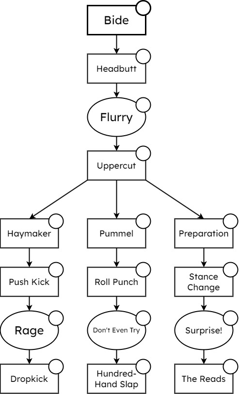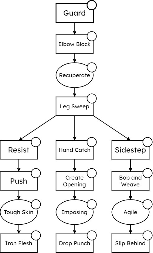 Skill trees have a number of different kinds of upgrades, either actively by unlocking an action or special ability, or passively by gaining stamina or health increases.
